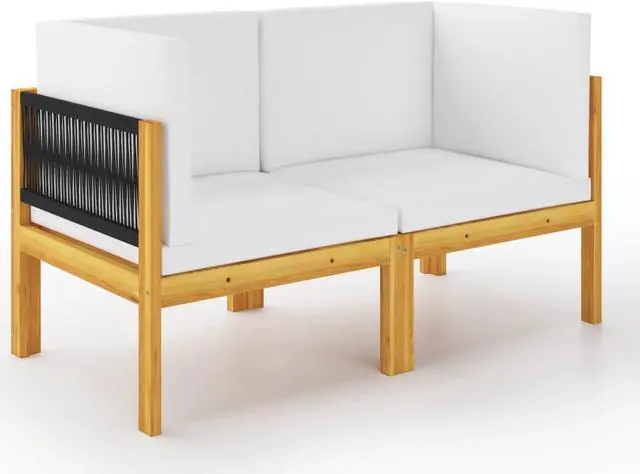 This 2-seater garden bench with cushions is the perfect blend of function and stylean awesome addition to your balcony, terrace, or patio. Made from solid acacia wood, the bench has an oiled finish that showcases its natural beauty and keeps it weather resistant. It gives you a comfy spot to relax outdoors, have chats, or just soak up the sun.