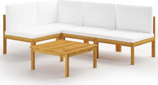 vidaXL Patio Lounge Set 5 Piece Sofa with Cushions Cream Solid Acacia Wood