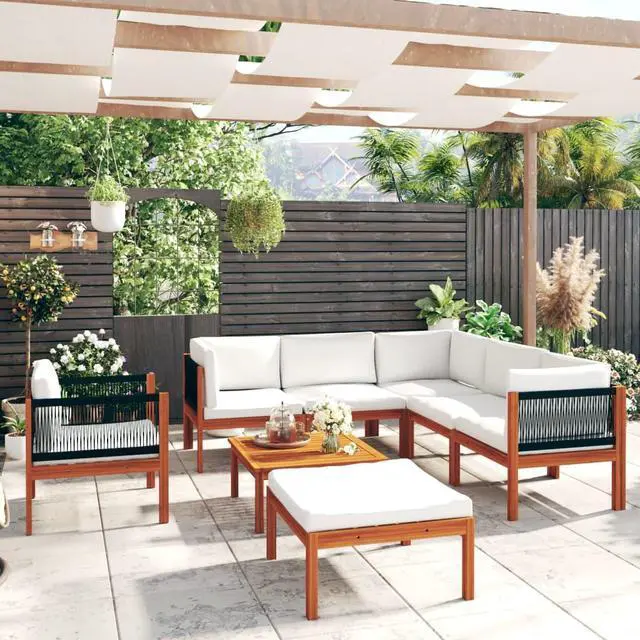 vidaXL Patio Lounge Set 8 Piece Sofa with Cushions Cream Solid Acacia Wood