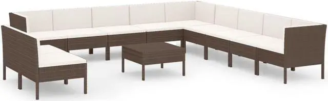 vidaXL Garden Lounge Set Patio Sectional Sofa Couch 12 Piece Poly Rattan Brown