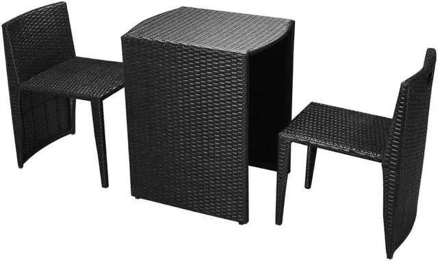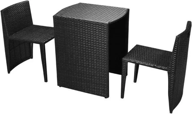 This outdoor dining set will be great for al fresco dining or lounging in the garden, or on the balcony or patio. The steel frames make the table and chairs strong and sturdy, and thanks to their lightweight construction, all items are easy to move. The weather-resistant and waterproof PE rattan makes this dining set suitable for daily outdoor use and easy to clean. The soft cushions are highly comfortable. The set is ideal for balconies or smaller patios and gardens as the chairs can be conveniently stored underneath the table to save space.