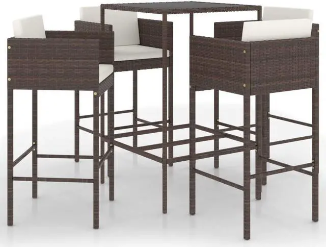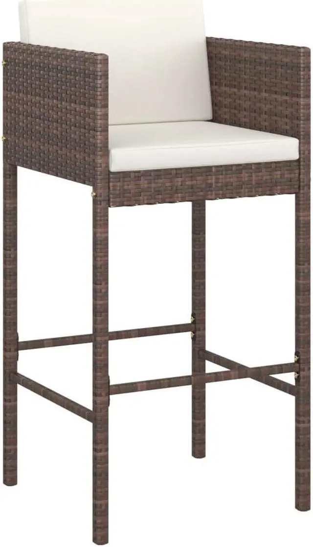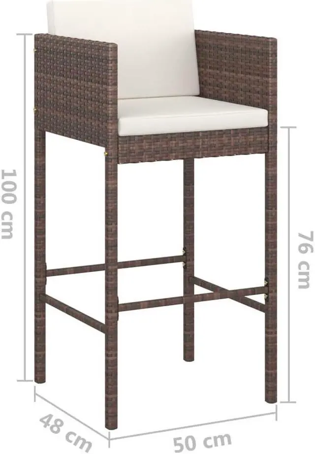 Made of weather-resistant and waterproof PE rattan, this outdoor bar set is easy to clean, hard-wearing and suitable for daily use. The powder-coated steel frame makes the table and stools sturdy and durable. The tempered glass tabletop is ideal for placing drinks, food, or some decorative items. The footrest and cushions also add additional seating comfort for the stool. Thanks to the lightweight construction, all items are easy to move.