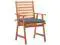 These garden chairs are made of solid acacia wood, a tropical hardwood, which is weather-resistant and durable for years of use. The oil finished surface is easy to clean with a damp cloth. The slatted design will bring a rustic charm. What's more, the included cushions provide extra comfort while seating. It is made of 100% polyester that has been treated to make it waterproof. Each cushion has two sets of ropes to fix it on the chair tightly.