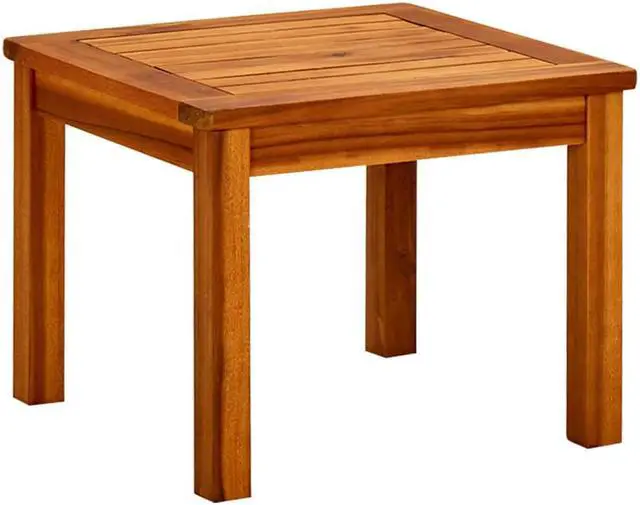 Enjoy a cozy coffee time with your family or friends in your outdoor space with this stylish wooden patio coffee table! This table is made of solid acacia wood with a natural oil finish, which is weather resistant and durable. Every step of the process is carried out with the greatest care, be it polishing or lacquering. The sturdy tabletop with slatted design offers you space to put some snacks, fruit baskets, decorative items, as well as other essentials.