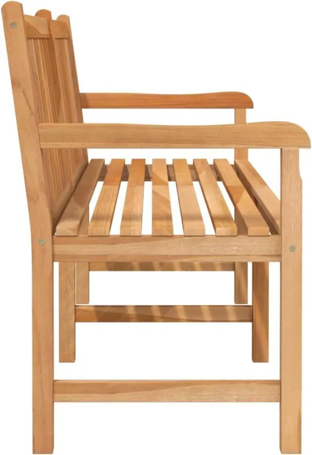 With a stylish yet practical design, this patio bench will take your outdoor living space to the next level! Constructed from extremely durable teak hard wood, this piece of teak furniture has been seasoned, kiln dried and then fine sanded to give a very smooth appearance. Teak wood is known for its exceptional strength and weather resistance, making it far more suitable for garden furniture than any other kind of wood. Teak wood is the perfect choice if you want to purchase a long lasting piece of garden furniture. The outdoor bench is applied with beautiful finish to give the wood a warm color.