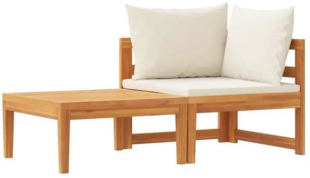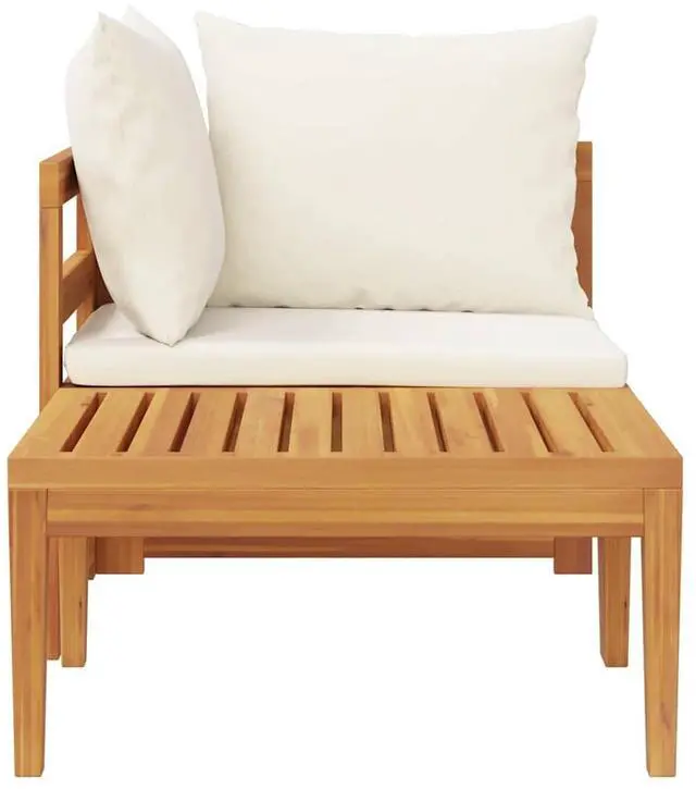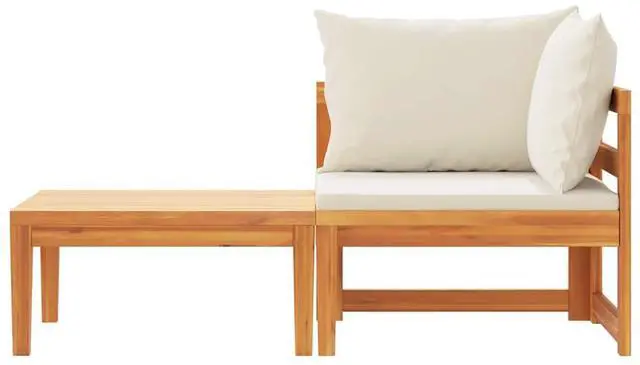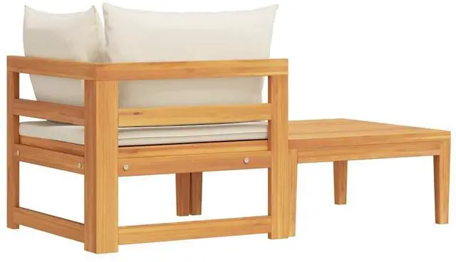 Enjoy a cosy leisure time with your friends or family in the outdoor space with this wooden patio lounge set! This outdoor lounge set is made of solid acacia wood, a hardwood with dense grains. This beautifully-designed garden lounge set is stable, durable and eye-catching. Additionally, the exquisite craftsmanship and beautiful wood grains make every piece slightly different from the next. In addition, the included cushions add more comfort while resting. The sturdy tabletop is ideal for placing drink and food.
