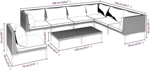 - Rattan color: Dark gray