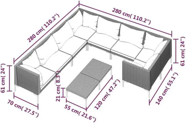 - Rattan color: Dark gray