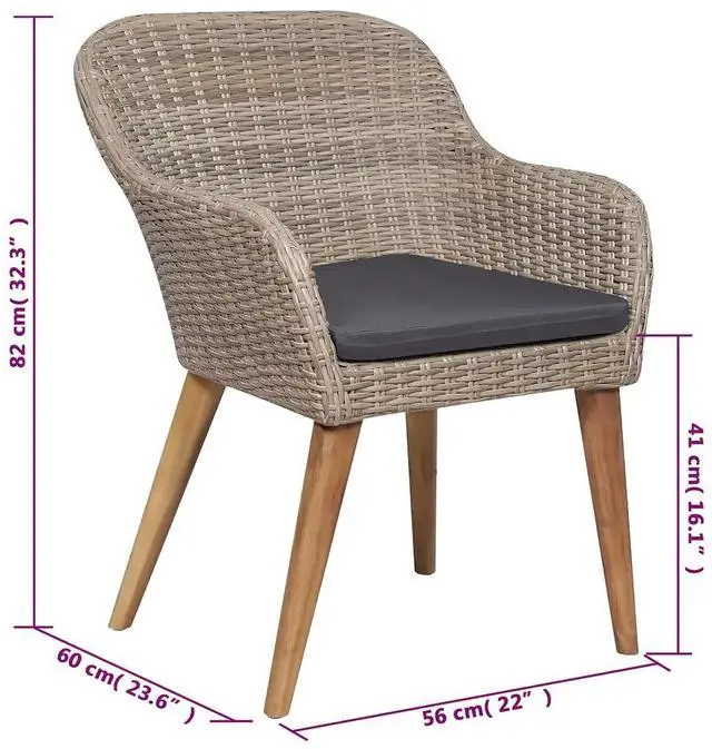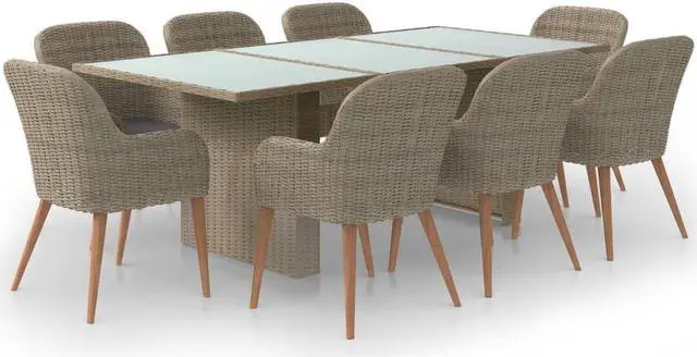 The outdoor furniture set features a sturdy powder-coated steel frame which makes it very stable and durable. Thanks to the weather-resistant PE rattan, the dining set is easy to clean, hardwearing as well as suitable for daily outdoor use. The glass tabletop is also easy to clean with a damp cloth. Moreover, the included soft seat cushions also add the set's extra comfort. The low-maintenance polyester cushion covers can be easily removed and washed.