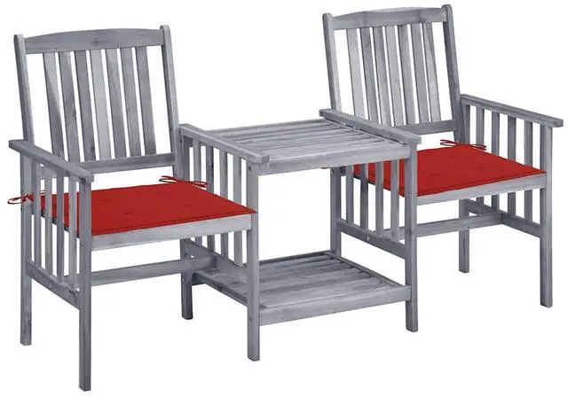 The table and chairs are made of solid acacia wood, enabling them exceedingly stable and sturdy. The sturdy tabletop and the lower shelf is ideal for holding your cups, books and other small items. And chairs' backrests and armrests ensure restful seating experience. Additionally, the cushions add extra comfort. Each cushion features two sets of ropes to fix it on the bistro set tightly.