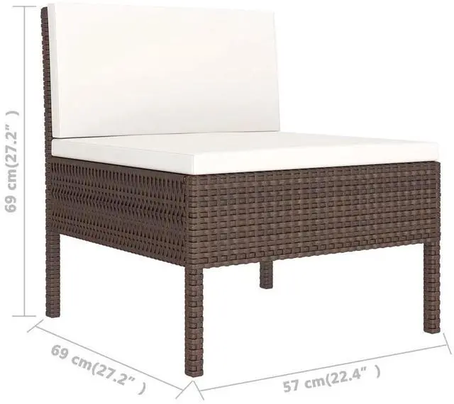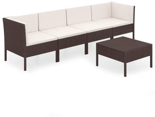 vidaXL Patio Lounge Set Patio Sectional Sofa Couch 5 Piece Poly Rattan Brown