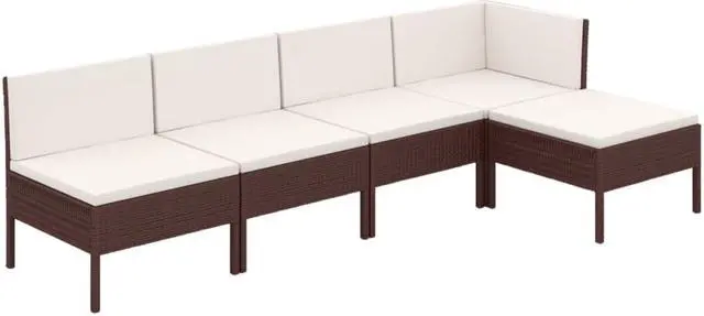 vidaXL Patio Lounge Set Outdoor Sectional Sofa Set 5 Piece Poly Rattan Brown