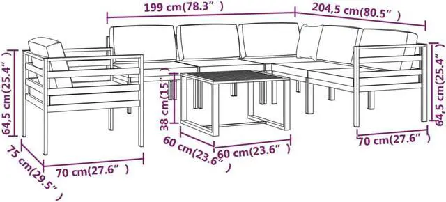 - Corner sofa dimensions: 27.6" x 27.6" x 25.4" (W x D x H))