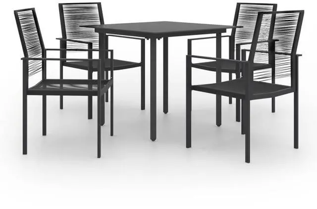 The dinner table and chairs feature power-coated steel frames, making them sturdy and stable. The glass tabletop also makes it easy to clean and weather resistant. This outdoor table is stable, durable and rust-resistant. Thanks to the water-resistant PVC hollow rattan, the garden chairs are hard-wearing, easy to maintain and suitable for daily outdoor use. Additionally, the backrest also adds extra seating comfort for the chair.