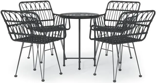 vidaXL Patio Dining Set 5 Piece Table and Chairs Modern Black Poly Rattan