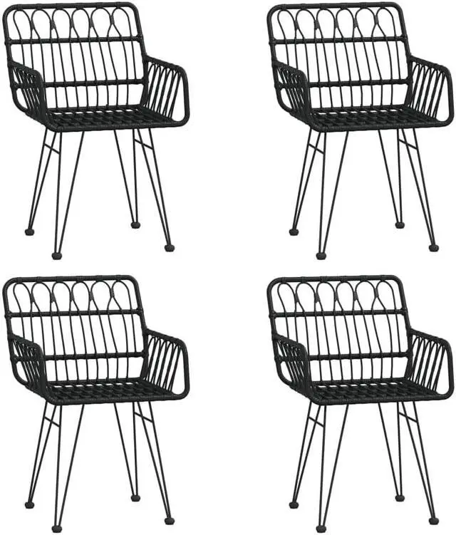 vidaXL Patio Dining Set 5 Piece Outdoor Table and Chairs Black Poly Rattan