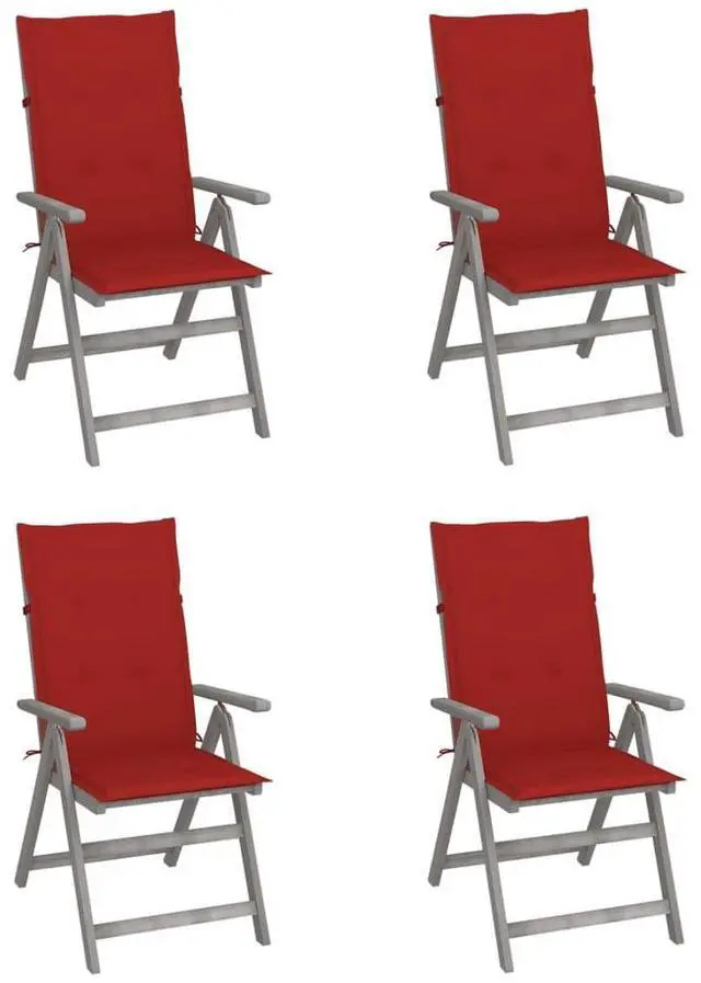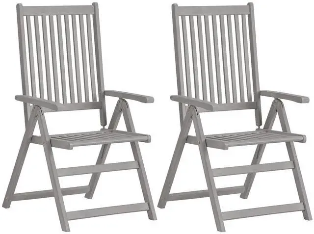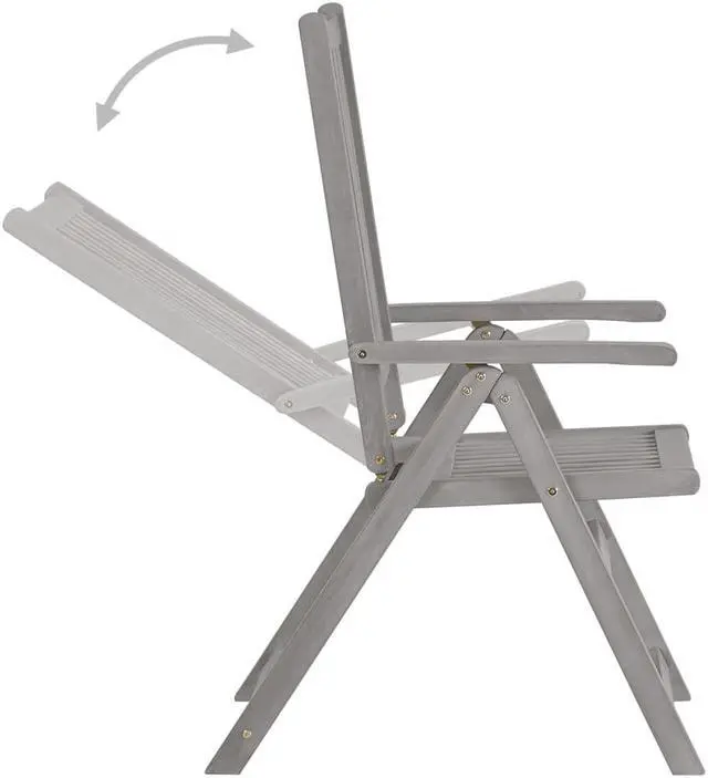 These armchairs are made of solid acacia wood with a gray wash finish, a hardwood with dense grains. These beautifully-designed outdoor chairs are stable, durable and eye-catching. The chair's backrest can be adjusted in 5 reclining settings, so you can always set the most comfortable position as per your preference. What's more, the included cushions provide extra comfort while lounging or dining. Each cushion has an elastic band and two sets of ropes to fix it on the chair tightly. These chairs are perfect for dining with your family, or just enjoying the weather in your garden.