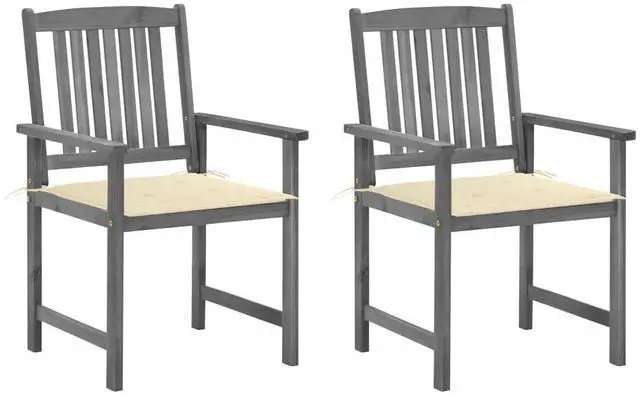 These garden chairs are made of solid acacia wood, making them sturdy and stable. The cushions add extra comfort. Each cushion features two sets of ropes to fix it on the outdoor chair tightly.