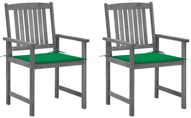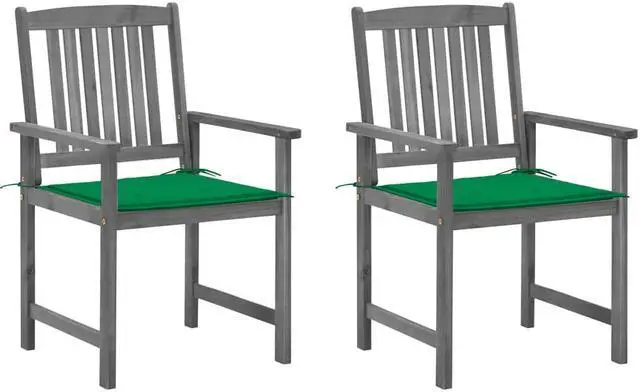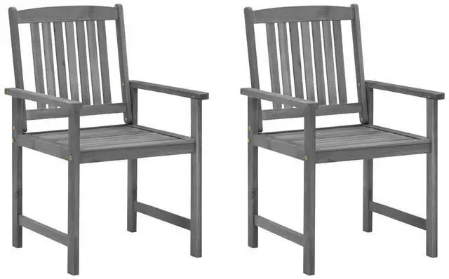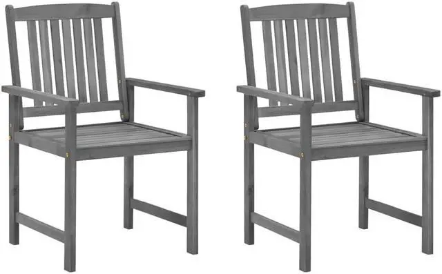 vidaXL Patio Chairs 2 Pcs Outdoor Chair with Cushions Gray Solid Wood Acacia