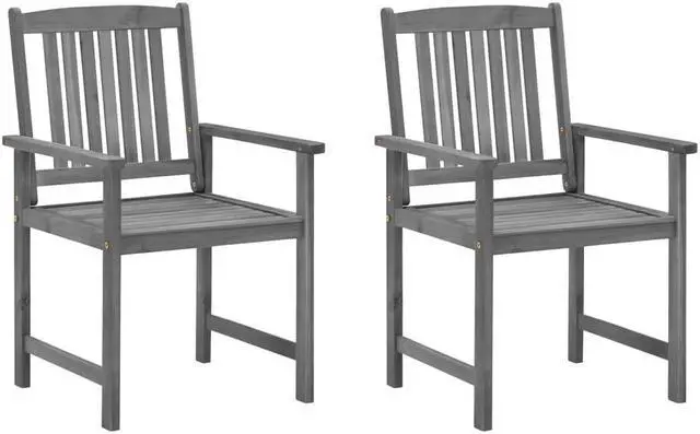 Decorate your outdoors with these slatted wooden patio chairs, adding a touch of rustic charm.