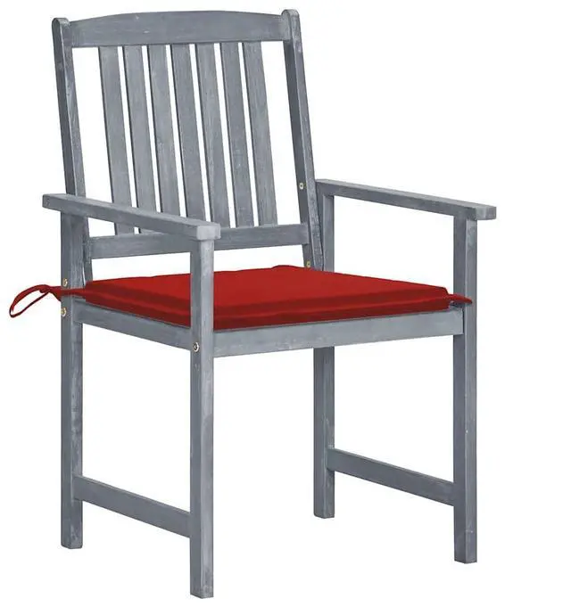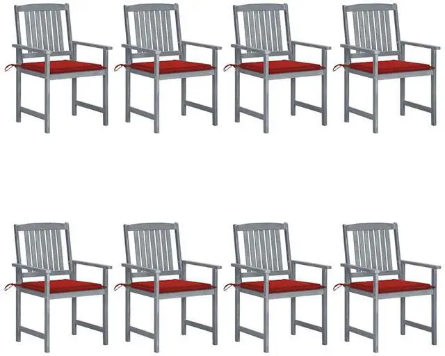 This 8-piece outdoor patio chair set combines durability and style, making it a great choice for dining and chilling in your garden, terrace, or balcony. Its smooth gray wash finish goes perfectly with the rustic appeal of solid acacia wood, and the bright red cushions add comfy seating, boosting the overall vibe of your outdoor space.Unmatched Durability: Crafted from solid acacia wood, these chairs are built to take on varying weather conditions, ensuring they last. A waterproof cover when not in use is a smart choice for extra protection.