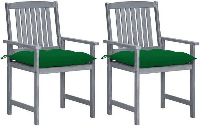 vidaXL Patio Chairs 2 Pcs Outdoor Chair with Cushions Gray Solid Acacia Wood