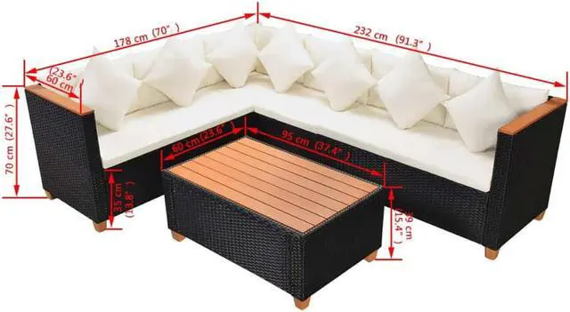 2-seater sofa segment dimensions (with one armrest): 46.5" x 23.6" x 27.6" (W x D x H)