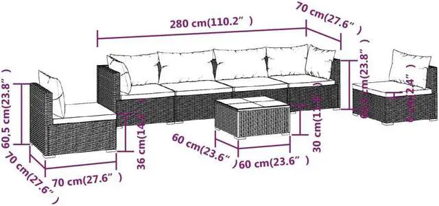 Seat cushion dimensions: 27.6" x 24.8" x 2.4" (L x W x T)