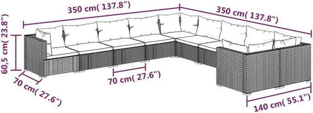 Relax and enjoy outdoor space with your family and friends on this classic poly rattan patio lounge set with cushions!