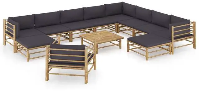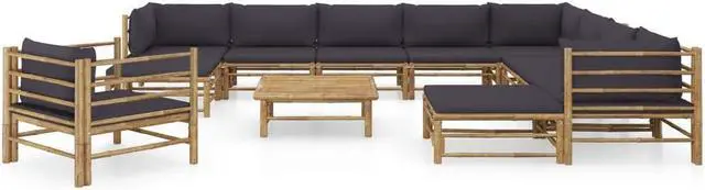 vidaXL Patio Lounge Set 12 Piece with Dark Gray Cushions Bamboo Garden Seat