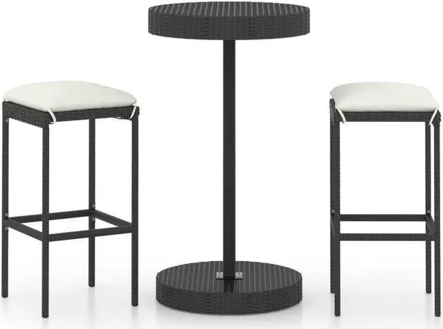This stylish garden bar set provides you with a leisurely and comfortable time with your family and friends. The bar table is supported by a powder-coated steel frame, making it stable and sturdy. The round tabletop is ideal for placing drinks, food, or some decorative items. The stools have a strong construction of steel frame and are made of weather-resistant PE rattan, ensuring stability and are easy to move. The cushion and footrest also add additional seating comfort for the stool. The polyester cushion cover with concealed zipper makes it easy to clean.