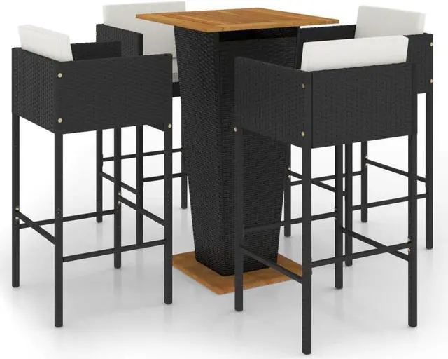 This stylish garden bar set provides you with a leisurely and comfortable time with your family and friends. Made of weather-resistant and waterproof PE rattan, this outdoor bar set is easy to clean, hard-wearing and suitable for daily use. The powder-coated steel frame makes the table and stools sturdy and durable. The wooden tabletop is ideal for placing drinks, food, or some decorative items. The footrest and cushions also add additional seating comfort for the stool. Thanks to the lightweight construction, all items are easy to move.