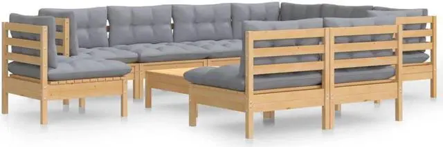 vidaXL Solid Pinewood Patio Lounge Set 10 Piece with Gray Cushions Garden Sofa