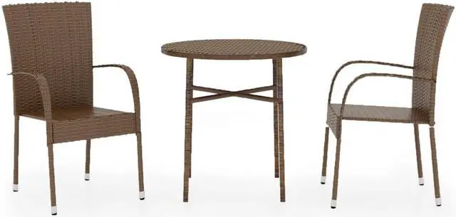 Enjoy a nice meal or afternoon tea in your outdoor space with this poly rattan garden dining set! Featuring an elegant design, it will become the focal point of your garden and patio! The practical outdoor dining set has a powder-coated steel frame covered with PE rattan, making it hardwearing, easy to clean, and suitable for daily outdoor use. The table is excellent for keeping drinks and food within reach. The chairs are lightweight and can be stacked to save space when not in use.