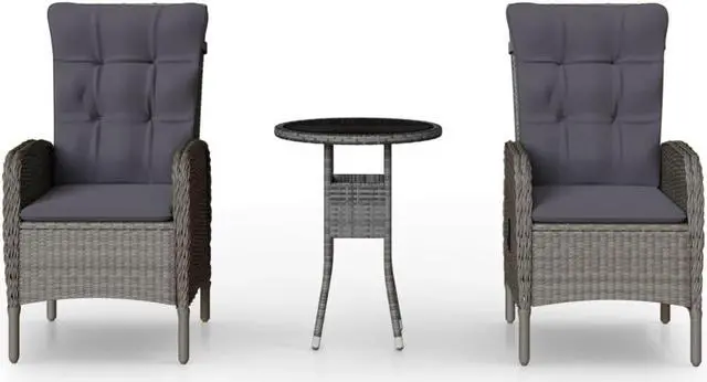 This 3-Piece Garden Bistro Set brings stylish outdoor seating to your garden, patio, or balcony, made from top-quality materials built to withstand the weather. The smart grey finish pairs nicely with its modern design, making it a great choice for both cozy corners and larger spacesperfect for chilling out or having friends over.