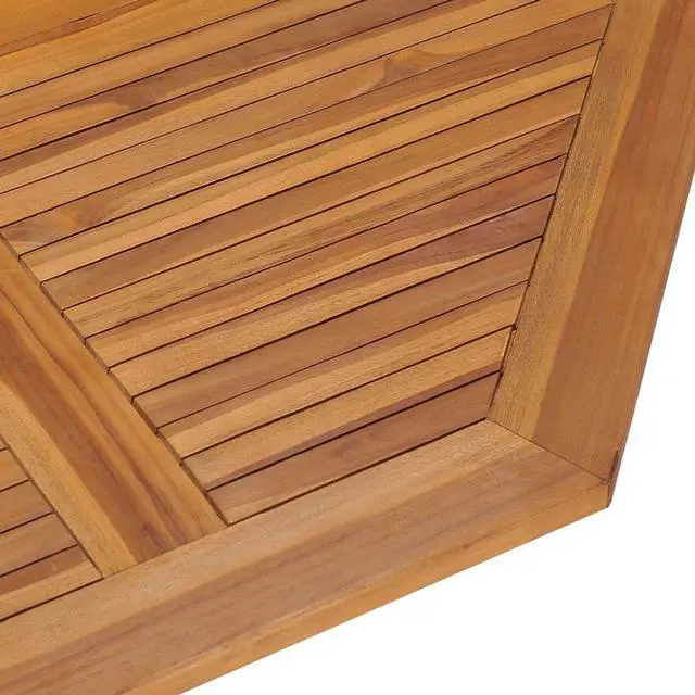 - Solid teak wood: Solid teak wood is a beautiful natural material. It has been seasoned, kiln dried and then fine sanded to give a very smooth appearance. Teak wood is known for its exceptional strength and weather resistance.