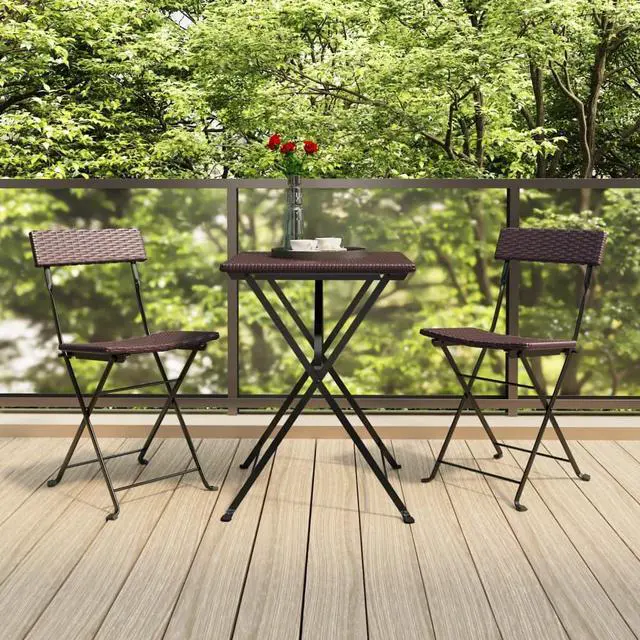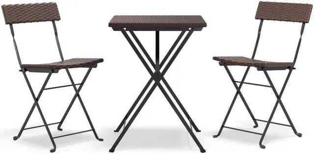 This 3 piece folding bistro set made of poly rattan is an excellent choice for dining or relaxing in your garden, balcony or patio.
