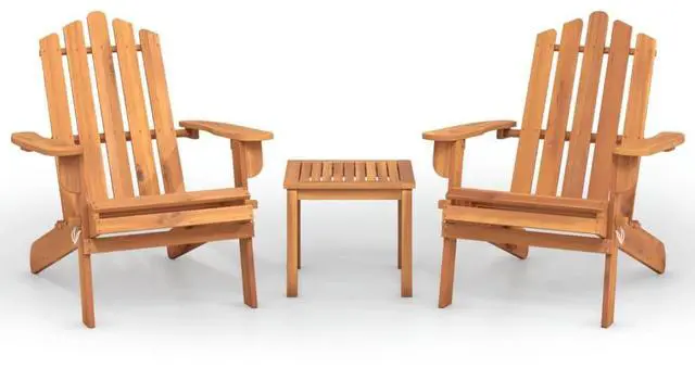 Enjoy your leisure time with this wooden patio lounge set in Adirondack style.