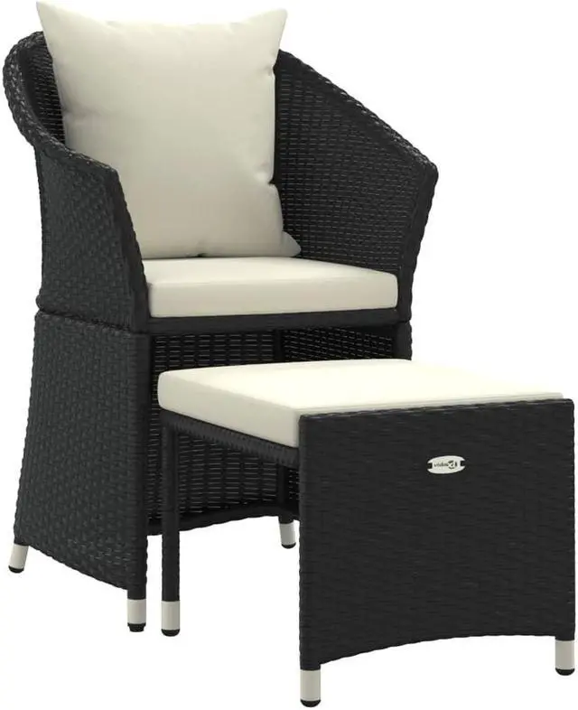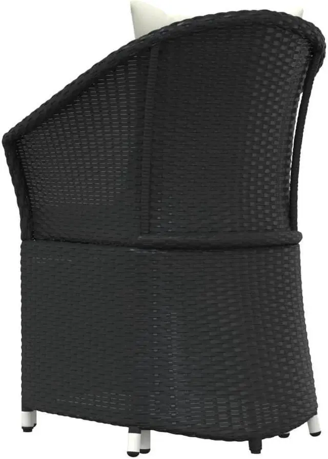 The trendy design features sleek black poly rattan and cozy cushions, delivering a relaxing seating spot for up to two in a modern setting.