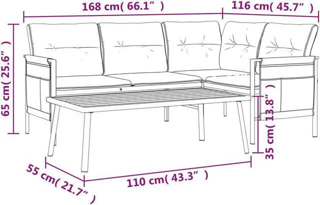 Stable frame: The powder-coated and e-coated steel frame ensures the lounge set's sturdiness and stability.