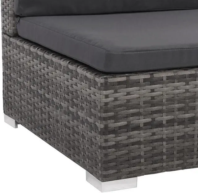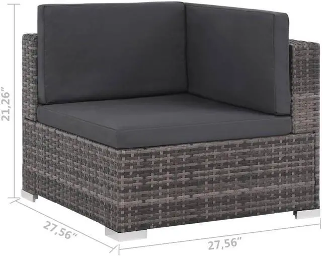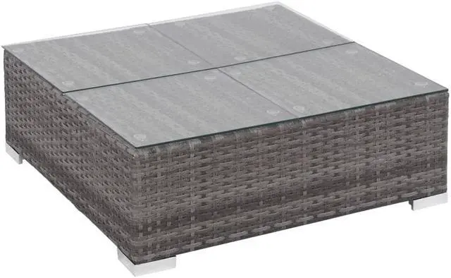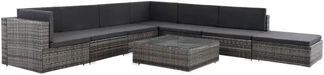 This poly rattan sofa set, consisting of 2 corner sofas, 4 center sofas, 1 coffee table, 1 ottoman, 8 back cushions and 7 seat cushions, will offer a stylish seating area for your garden or patio. Thanks to the weather-resistant PE rattan, the patio sofa set is easy to clean, hard-wearing and suitable for daily outdoor use. The powder-coated steel frames make the set sturdy and stable. The set is lightweight and the modular sections can be easily combined into different configurations. This set is also delivered with the highly comfortable, thickly-padded seat cushions and back cushions for the ultimate comfort.