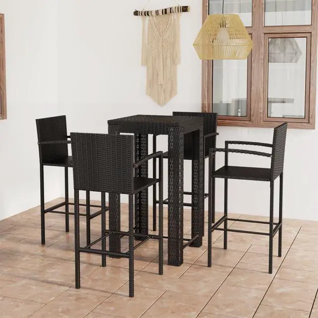 This stylish garden bar set provides you with a leisurely and comfortable time with your family and friends. The bar table is supported by a powder-coated steel frame, making it stable and sturdy. The tabletop is ideal for placing drinks, food, or some decorative items. The stools have a strong construction of steel frame and are made of weather-resistant PE rattan, ensuring stability and are easy to move. The footrest also add additional seating comfort for the stool.