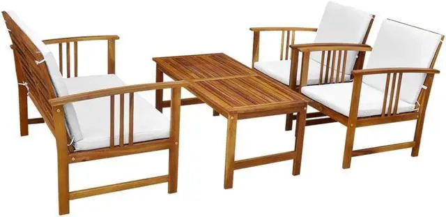 This wooden furniture set is made for your comfort and convenience. It not only creates additional seating space, but also makes an attractive addition to your garden, terrace, or patio! The garden furniture set is made of high-quality acacia wood, a tropical hardwood, which is weather-resistant and highly durable. Its clean lines exude a rustic and natural charm. The thick, removable cushions are highly comfortable and easy to wash. This garden furniture set is a great combination of style and durability. Delivery includes 1 table, 1 bench, 2 chairs and 6 removable cushions, altogether 10 pieces.