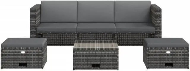 The thick, removable seat and back cushions are highly comfortable and washable. The table and ottomans with ample storage space will get your magazines, knick-knacks, and other items organized and within reach. The table and ottomans neatly fit under the sofa and can be easily pulled out or pushed back when not in use to save space. This set is easy to assemble. Delivery includes 1 sofa, 1 table, 2 ottomans, and 8 cushions.