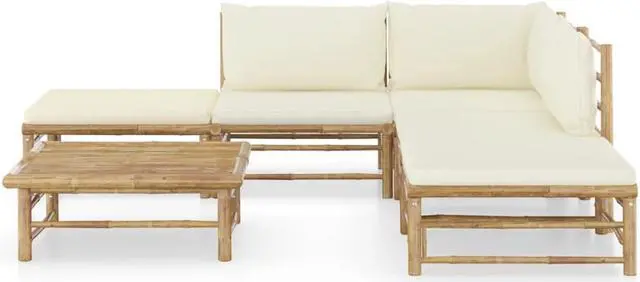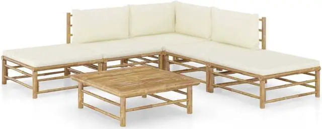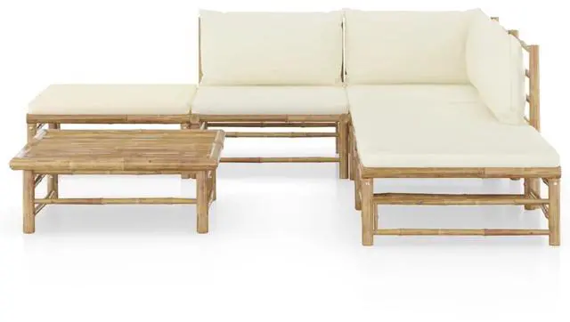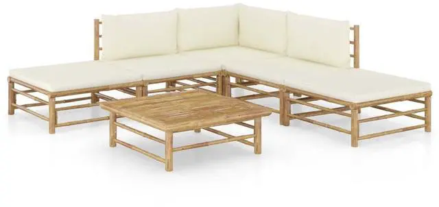 vidaXL Patio Lounge Set 6 Piece with Cream White Cushions Bamboo Garden Seat