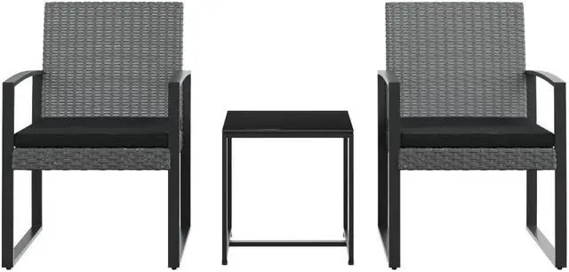 vidaXL Patio Dining Set 3 Pcs Patio Set with Cushions Dark Gray PP Rattan