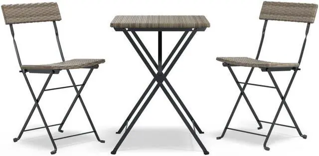 This 3 piece folding bistro set made of poly rattan is an excellent choice for dining or relaxing in your garden, balcony or patio.