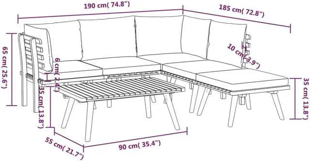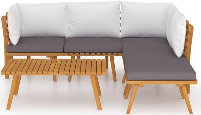 This wooden garden lounge set is an excellent choice for relaxing and enjoying the weather, taking a nap, or chatting with your family or friends. With a timeless slatted design, the wooden lounge set adds a touch of rustic charm to your patio, terrace or garden. Made of solid acacia wood, the outdoor furniture set is weather-resistant and highly durable. Combined with the thickly-padded cushions, this patio lounge set provides the utmost comfort. You can combine it with other modular segments to create your own personal garden lounge set configurations!