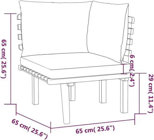 Corner sofa dimensions: 25.6" x 25.6" x 25.6" (W x D x H)