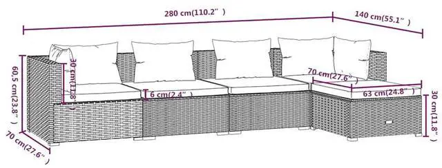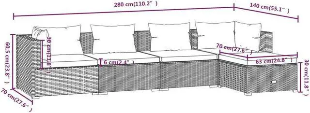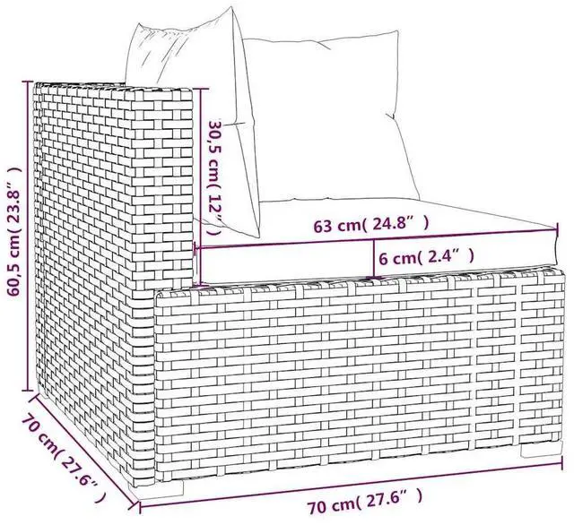 - Corner/Middle sofa dimensions (each): 27.6" x 27.6" x 23.8" (L x W x H)